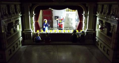 Das Set enthält genug Teile, um (unter Verwendung der gleichen Teile) mehrere Bühnensets zu bauen und um verschiedene Hintergründe darzustellen: eine Eingangstür, einen Balkon, ein Wohnzimmer, ein Esszimmer, ein Schlafzimmer, einen Wissenschaftsraum, einen Thronsaal, ein Grab, und sogar eine andere Theaterbühne in der Hauptbühne.