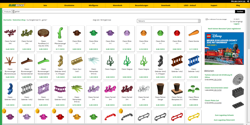 Alternativ hilft es wenn Du die Bausteine Seitenweise durchforstest. Lego hat immer mal wieder neue Gussformen für schon bestehende Bauteile. Diese Teile bekommen auch immer eine neue Nummer welche wir ev. noch nicht im System hinterlegt haben. Oben rechts könnt Ihr die Bausteine anzeigen lassen welche wir im System haben, aber zur Zeit nicht im Lager sind.