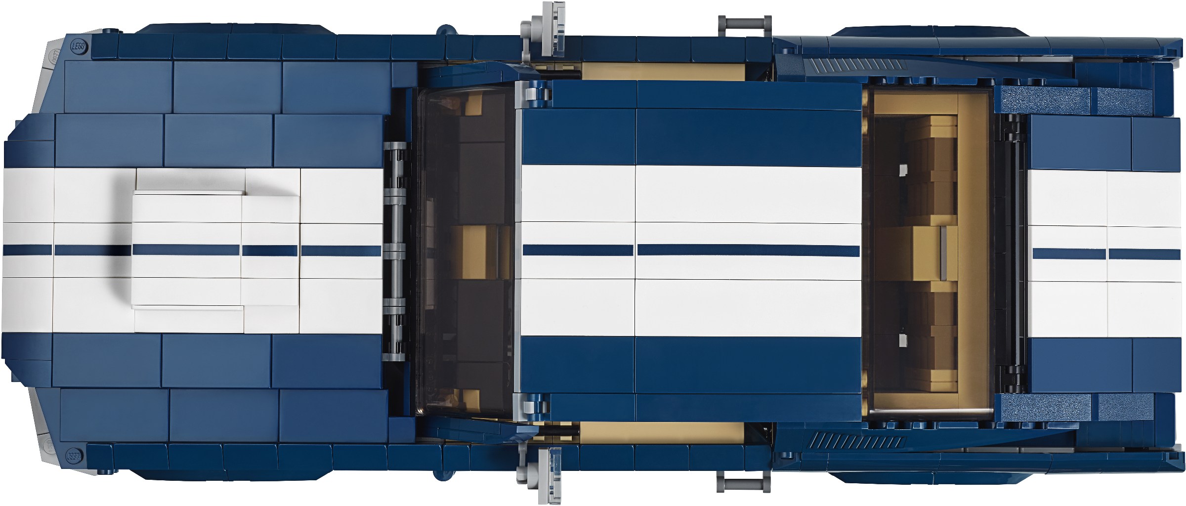 Entdecke den Zauber, der hinter dem legendären 1960er amerikanischen Muscle-Car steckt, mit dem LEGO® Creator Ford Mustang einschließlich dunkelblauer Karosserie mit weißen Rennstreifen, Lufthutze, Mustang-Abzeichen für den Kühlergrill, GT-Logos und 5-Speichen-Felgen mit straßentauglichen Reifen. Diese originalgetreue Nachbildung wurde in Zusammenarbeit mit Ford entwickelt und verfügt über zahlreiche optionale Erweiterungen zur individuellen Gestaltung wie Nummernschilder, einen Kompressor, einen Entenbürzel-Spoiler, massive Auspuffrohre, einen Frontspoiler und einen Lachgasbehälter. Sogar die Position der Hinterachse lässt sich für einen besonders dramatischen Look verstellen! Nimm das Dachelement ab oder öffne die Türen, um so auf das detailreiche Innere mit schönen Sitzen, einem Radio, einer funktionstüchtigen Steuerung und einem in der Mittelkonsole platzierten Schalthebel zuzugreifen! Verstaue Kram im Kofferraum oder öffne die Motorhaube, sodass der detailgenaue Big-Block-390-V8-Motor mit Batterie, Schläuchen und Luftfilter zum Vorschein kommt. Dieses Bauset für Fortgeschrittene vermittelt ein anspruchsvolles und lohnendes Bauerlebnis und versprüht jede Menge Nostalgie. Dabei erweist es sich als wunderbares Ausstellungsstück für Zuhause oder das Büro.