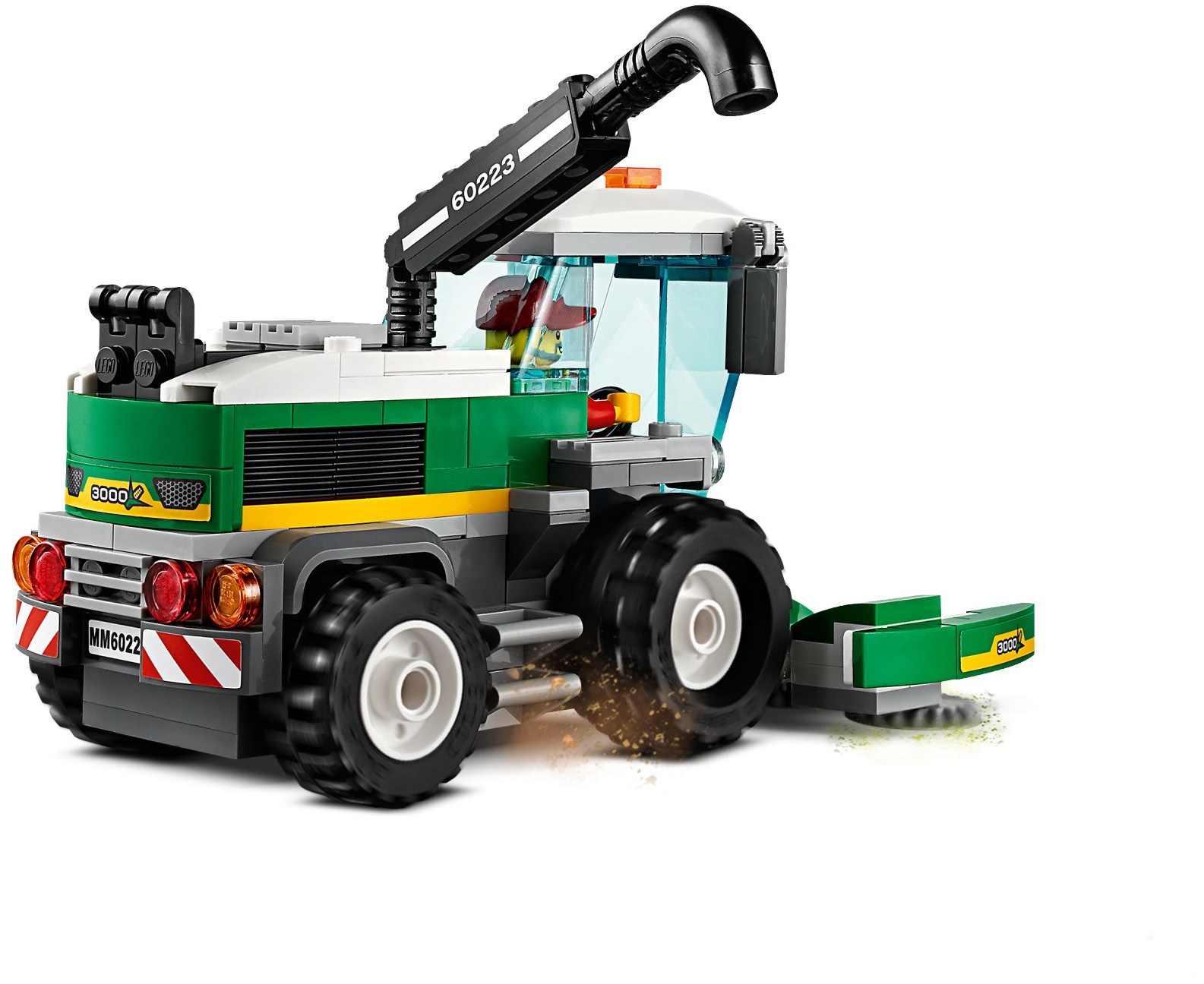 - Enthält zudem einen Mähdrescher mit Fahrerkabine zum Öffnen für die Minifigur, abnehmbarem Schneidwerk, Entleerungsschnecke hinten und einem Verbindungselement zum Befestigen auf dem Anhänger.