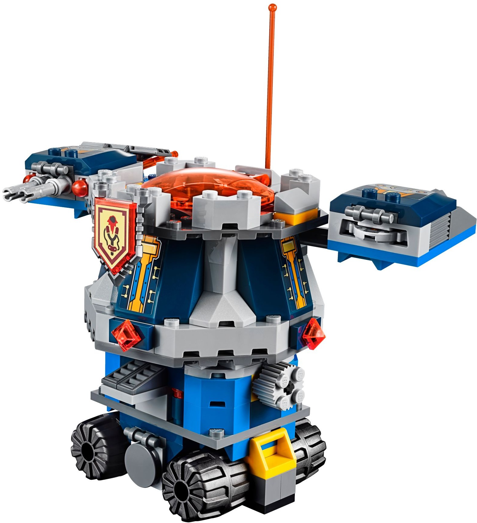 - Axls mobiler Verteidigungsturm verfügt über einen rotierenden abnehmbaren Wachturm mit Rädern sowie mit zwei federunterstützten Shootern und einem Scheibenwerfer, über ein Staufach für das Buch der Angst, ein verborgenes Katapult, einen Kontrollraum sowie über 2 Cockpits für Axl und einen Axl-Robo. Darüber hinaus gibt es noch 4 verdeckte seitliche Staufächer für die Ausrüstung und das Werkzeug der Axl-Robos.