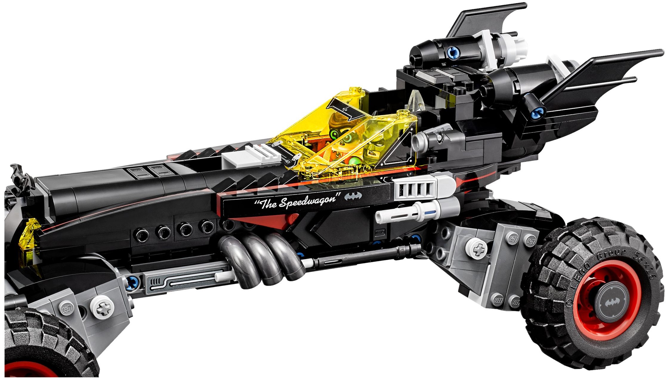 - Das Batmobil verfügt über ein Cockpit für zwei Minifiguren mit Funktion zum Absprengen des Daches, große in jede Richtung verstellbare Räder mit Gummireifen, zwei Shooter und bewegliche Batwings.