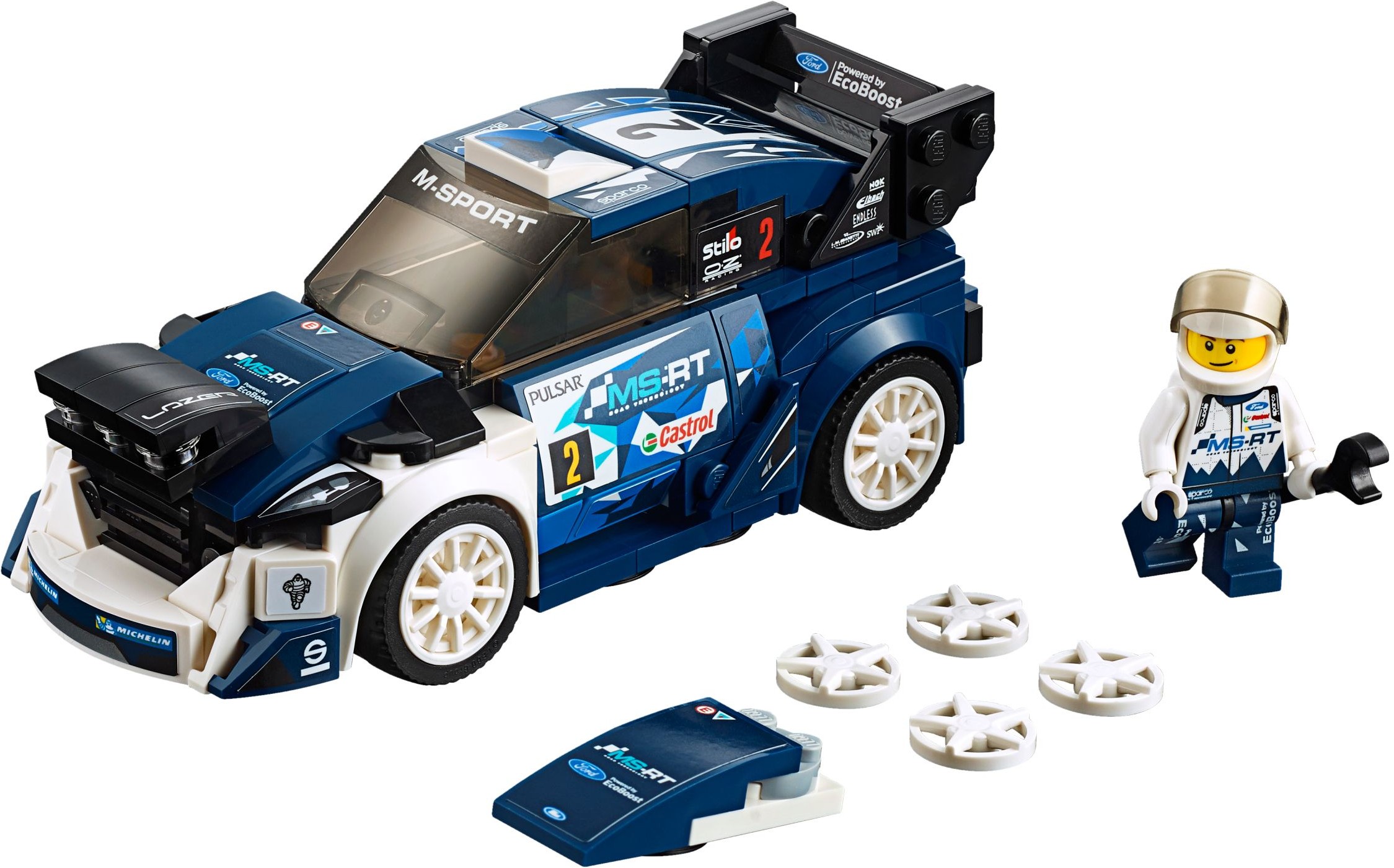 - Der rennbereite baubare Ford Fiesta M-Sport WRC enthält ein Cockpit für eine Minifigur mit abnehmbarer Windschutzscheibe, zwei austauschbaren Verdecken – davon eines mit Scheinwerferelementen – mit Gummireifen, transparenten Lichtelementen, authentischen Designdetails, Rennfarben und Rennaufklebern.
