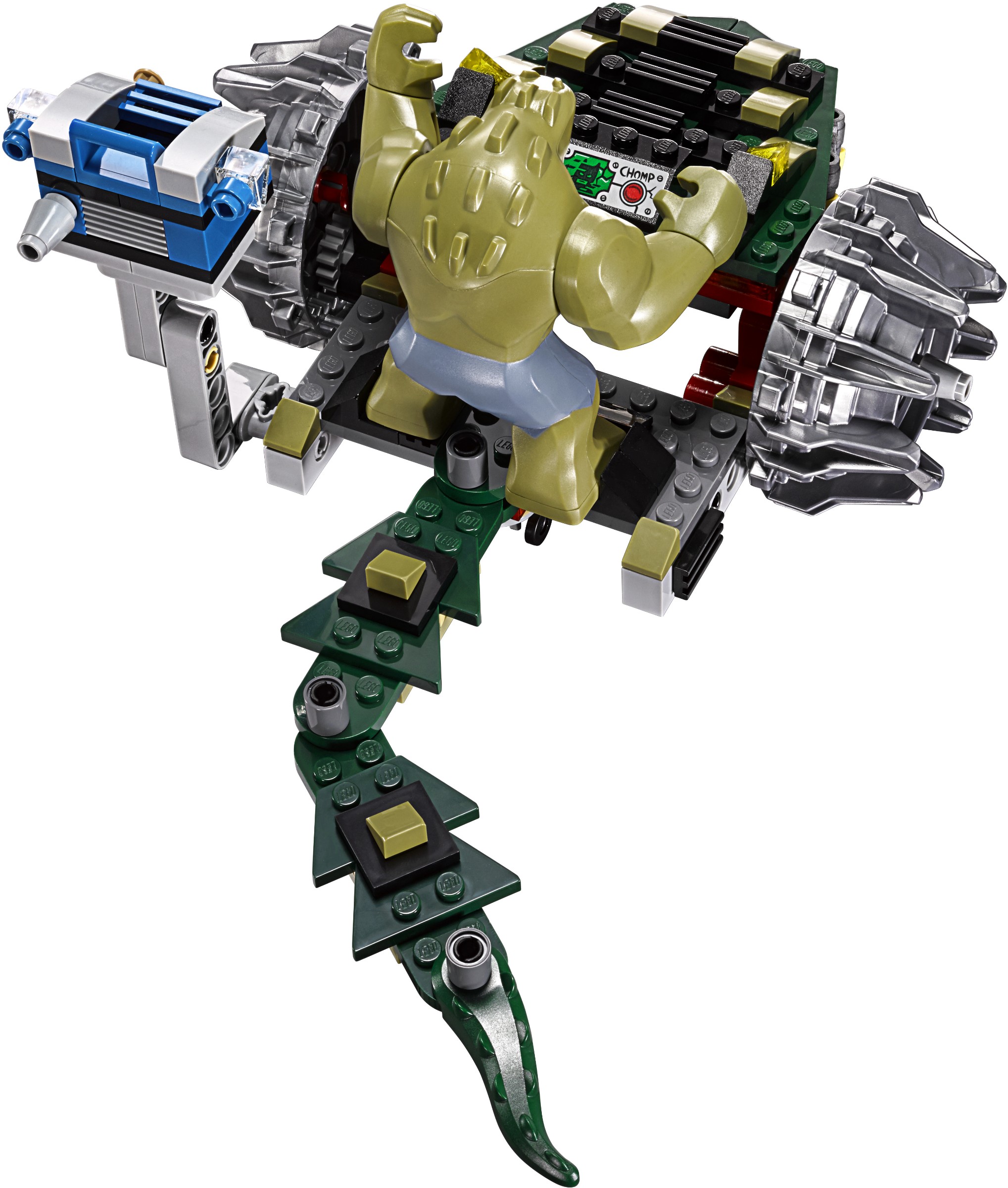 Fahre alle Geschütze auf und setz den Rammbock ein, um Batmans Gegner zu besiegen. Bleib mit dem Motorrad aus der Reichweite des beweglichen Schwanzes und des malmenden Gebisses am Chomper – und weiche den fliegenden Bumerangs des Fahrzeugs aus. Enthält 4 Minifiguren.