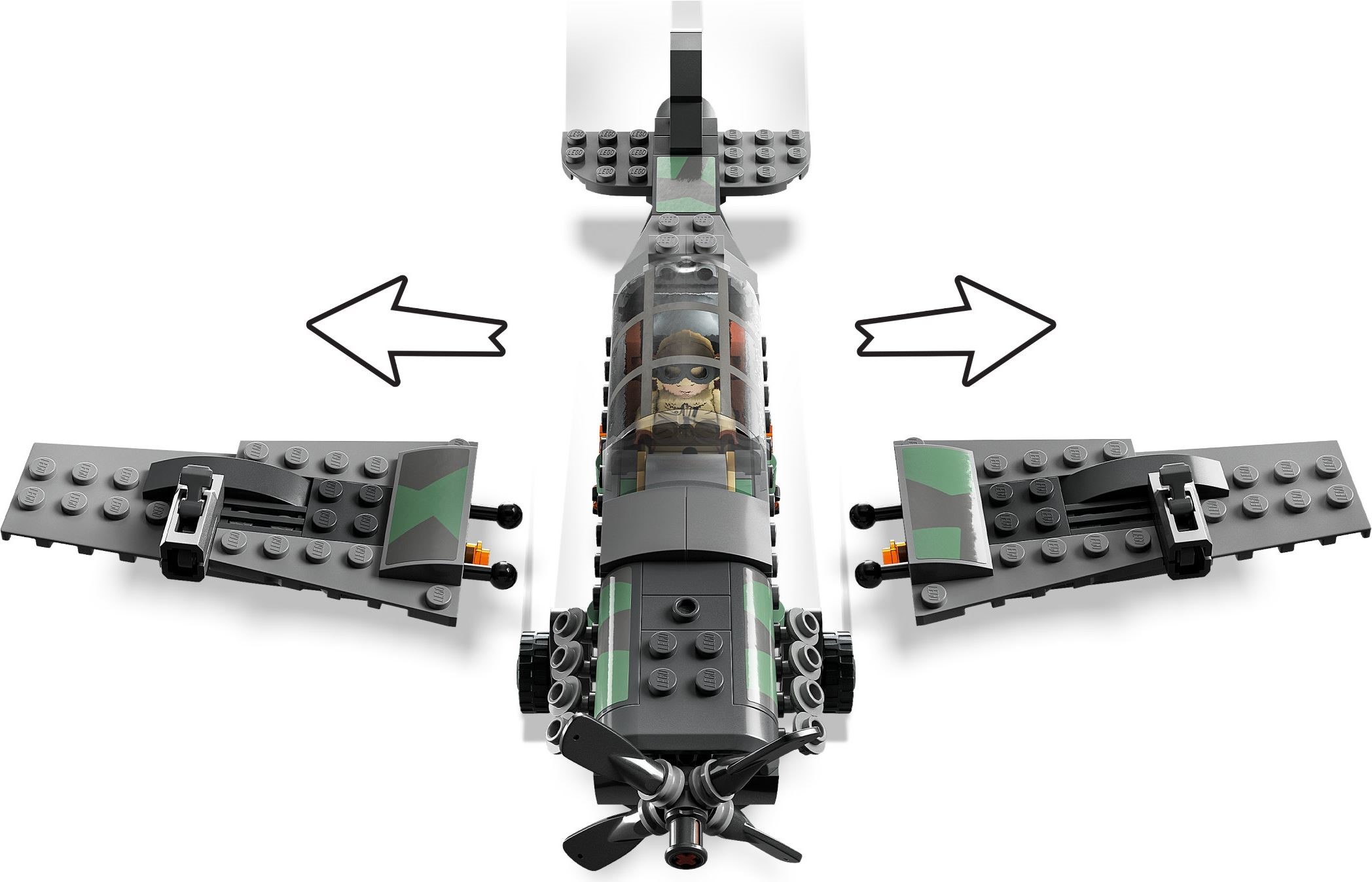 - Jede Menge Funktionen: Das Jagdflugzeug hat einen Propeller, 2 Shooter und abnehmbare Flügel. Und der Kofferraum im Heck des offenen Kübelwagens enthält einen Regenschirm und eine Pistole