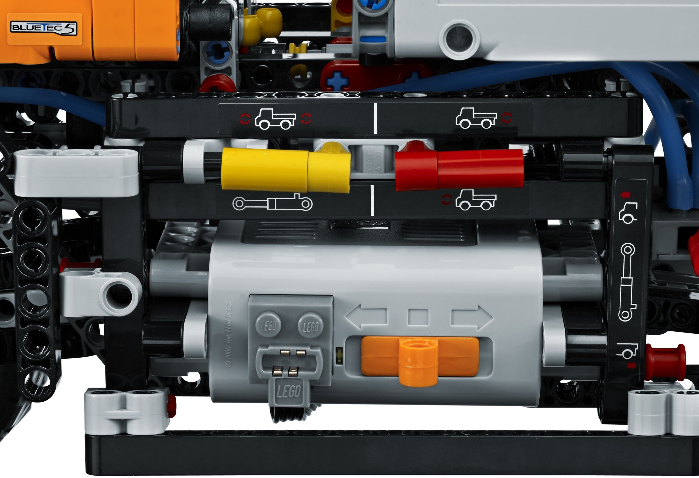 - Mit pneumatisch angetriebenem Gelenkkran mit funktionierendem Greifer und Winde, angetrieben von LEGO® Power Functions!