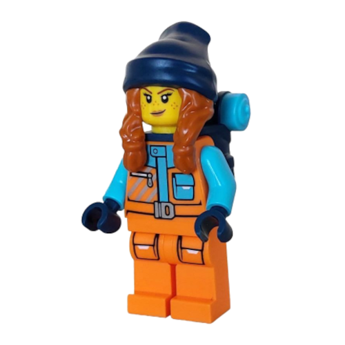 Arctic Explorer - Female, Orange Jacket, Dark Orange Braids with Dark Blue Beanie, Freckles, Backpack