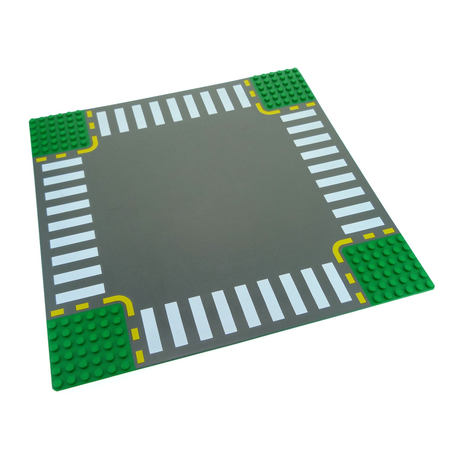 Englische Bezeichnung Baseplate, Road 32 x 32 6-Stud Crossroad with Dark Gray Road, Yellow Dashed Lines, and White Crosswalks Pattern