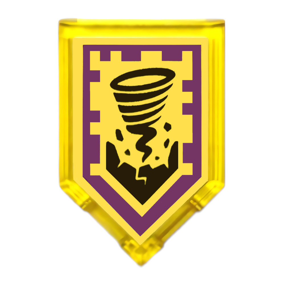 | Englische Bezeichnung | Tile, Modified 2 x 3 Pentagonal with Nexo Power Shield Pattern - Rock Twister |