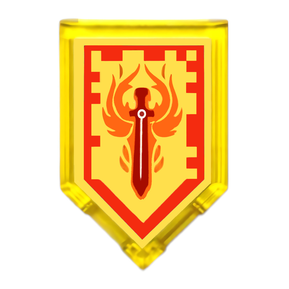 | Englische Bezeichnung | Tile, Modified 2 x 3 Pentagonal with Nexo Power Shield Pattern - Phoenix Blaze |