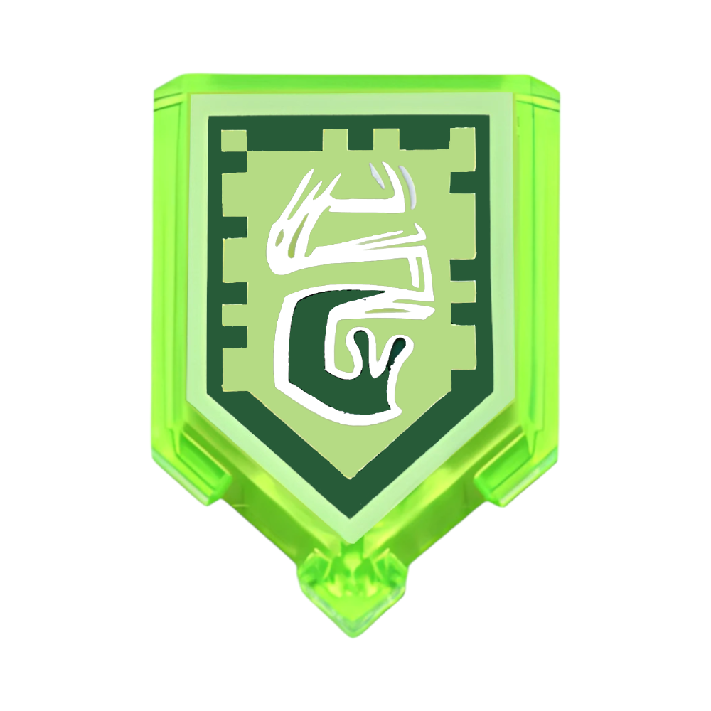 Tile, Modified 2 x 3 Pentagonal with Nexo Power Shield Pattern - Slime Slugs