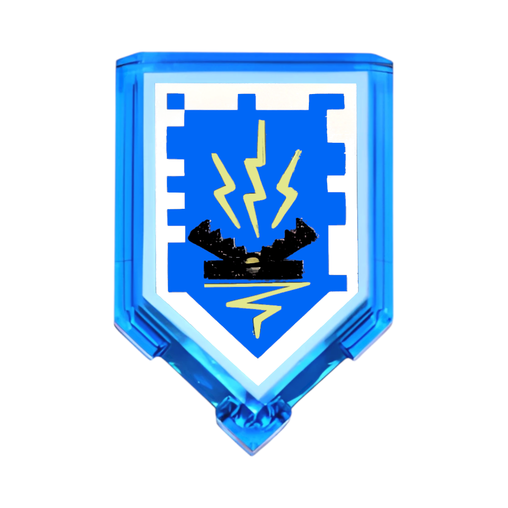 | Englische Bezeichnung | Tile, Modified 2 x 3 Pentagonal with Nexo Power Shield Pattern - Zap Zap |