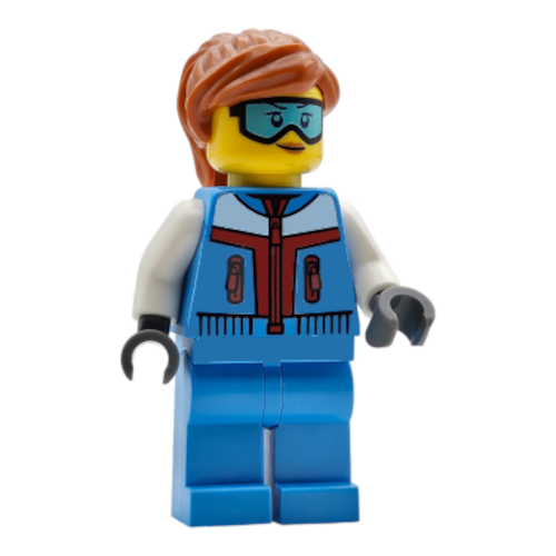 | Englische Bezeichnung | Ice Sculptor - Female, Dark Azure Jacket and Legs, Dark Orange Ponytail Hair, Ski Goggles |