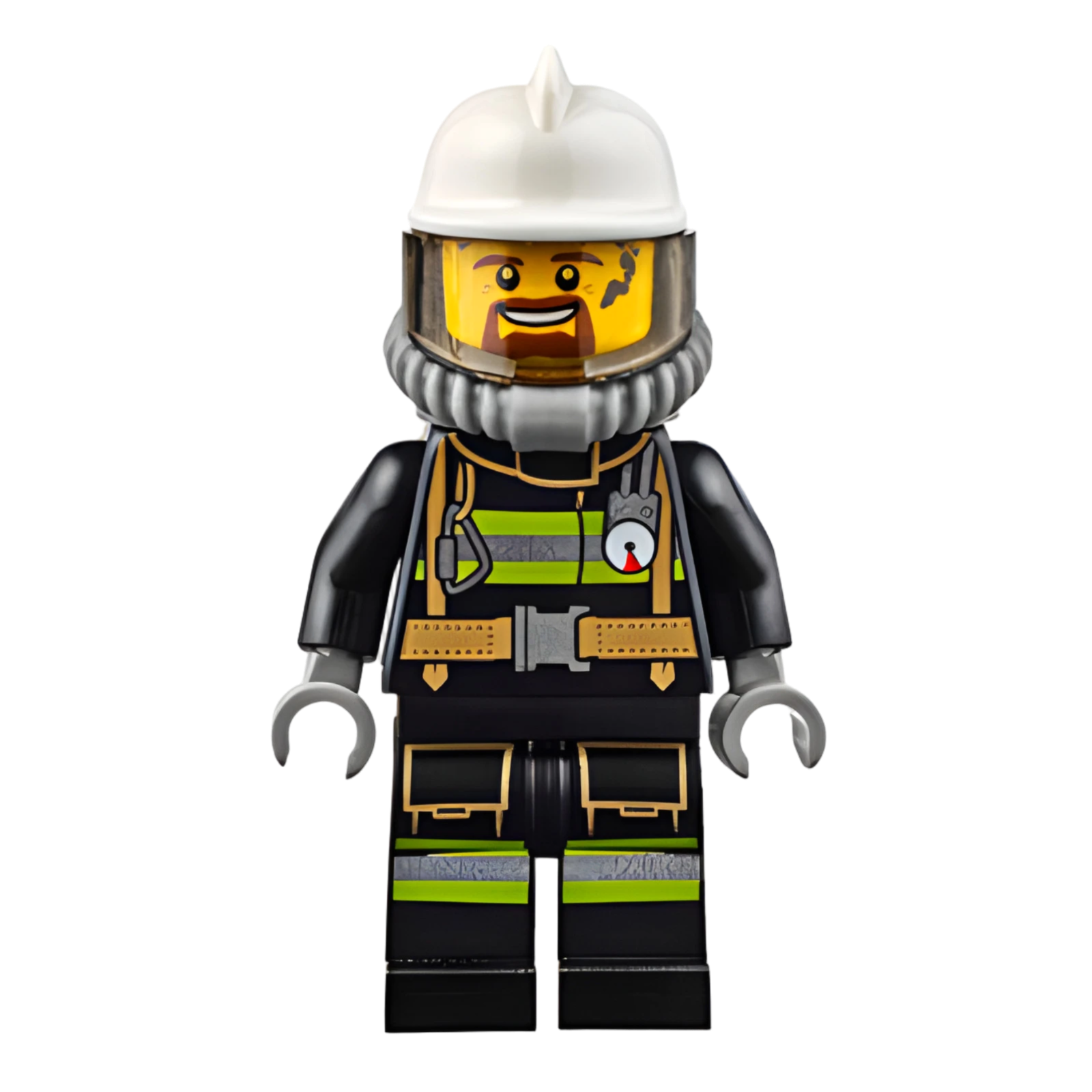 | Englische Bezeichnung | Fire - Reflective Stripes with Utility Belt, White Fire Helmet, Breathing Neck Gear with Air Tanks, Trans-Brown Visor, Goatee |