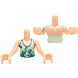 | Englische Bezeichnung | Torso Mini Doll Girl Light Aqua Halter Top with Dark Blue and Silver Pattern, Light Nougat Arms with Hands with Dark Azure Elves Tattoo Left |