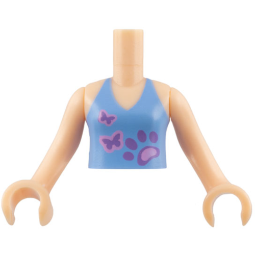 | Englische Bezeichnung | Torso Mini Doll Girl Medium Blue Halter Top with Paw and 2 Butterflies Pattern, Light Nougat Arms with Hands |