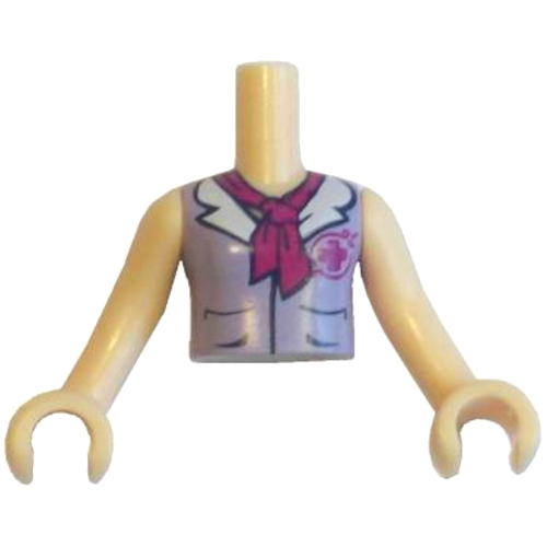 | Englische Bezeichnung | Torso Mini Doll Girl Lavender Blouse Top with Magenta Cross Logo, White Collar and Magenta Scarf Pattern, Light Nougat Arms with Hands |