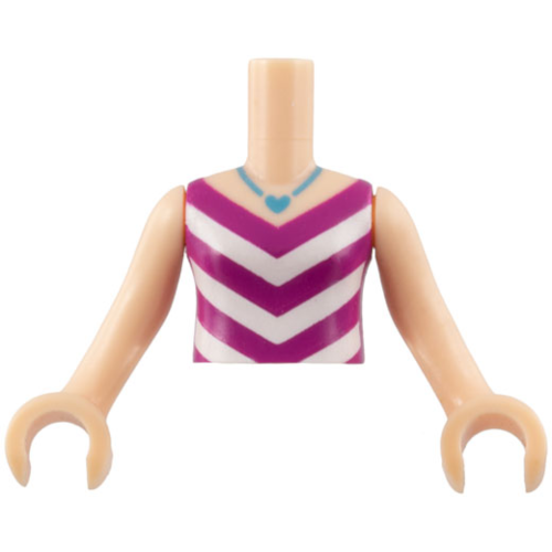 | Englische Bezeichnung | Torso Mini Doll Girl Magenta and White V-Stripe Top with Medium Azure Necklace with Heart Pendant Pattern, Light Nougat Arms with Hands |