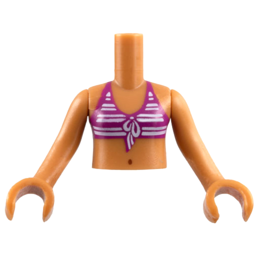 | Englische Bezeichnung | Torso Mini Doll Girl Magenta Bikini Top with White Stripes, Navel Pattern, Medium Nougat Arms with Hands |