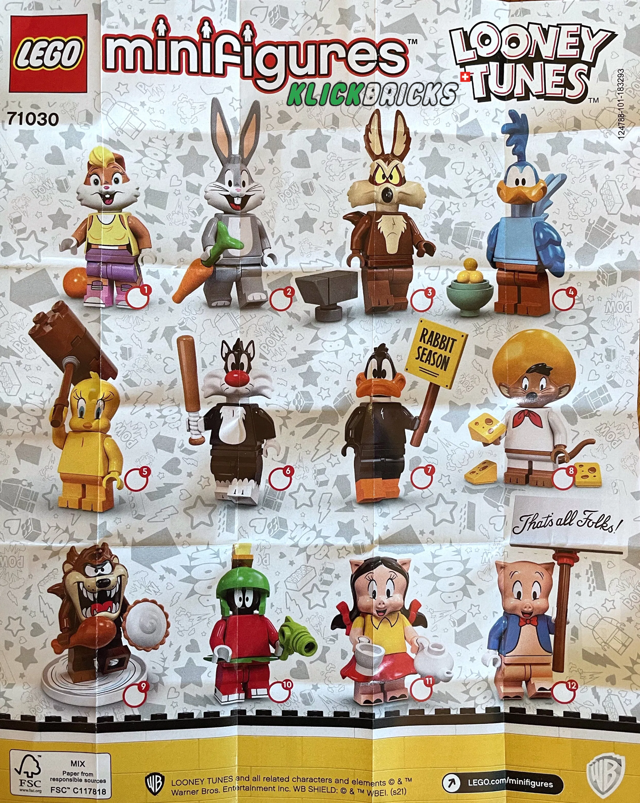 Junge und alte Zeichentrickfans können tolle Charaktere aus der TV-Serie Looney Tunes™ sammeln und zu ihren Sets hinzufügen. Die Minifiguren-Serie enthält Bugs Bunny, Lola Bunny, Daffy Duck, Tweety, Sylvester, Road Runner, Wile E. Coyote, Schweinchen Dick, Petunia Pig, Speedy Gonzales, Taz, der tasmanische Teufel, und Marvin der Marsmensch.