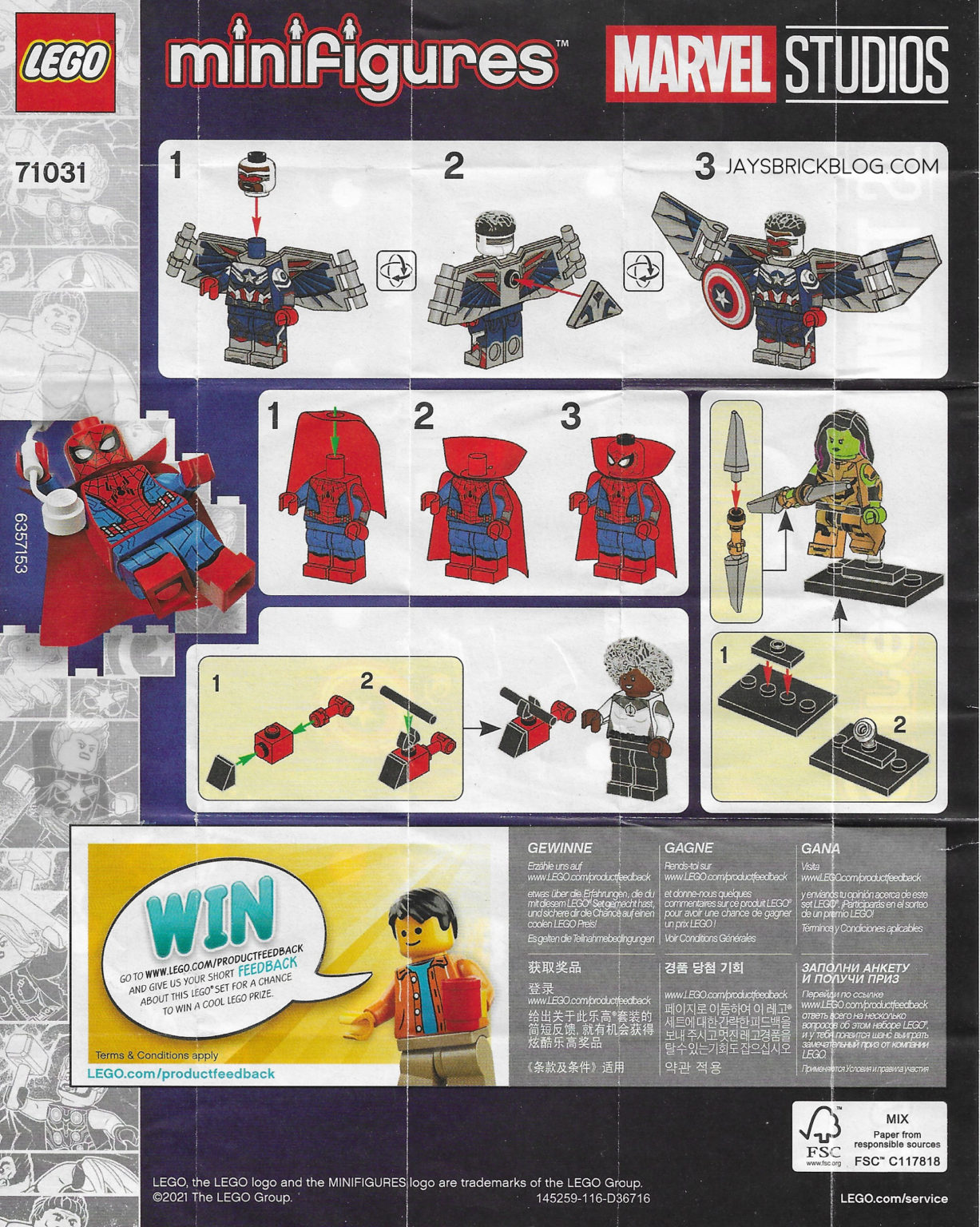 Actionfans jeden Alters können die coolen Minifiguren sammeln und ausstellen. Mit diesen Charakteren kann man aber auch die aktuellen Spielsets zu den Original-TV-Serien Wandavision, The Falcon and the Winter Soldier, Loki und What If…? aus den Marvel Studios ergänzen. Die Serie umfasst Scarlet Witch, Vision, Monica Rambeau, Winter Soldier, Captain America, Loki, Sylvie, T’Challa Star-Lord, Captain Carter, Gamora mit der Klinge von Thanos, Zombie Hunter Spidey und Zombie Captain America.