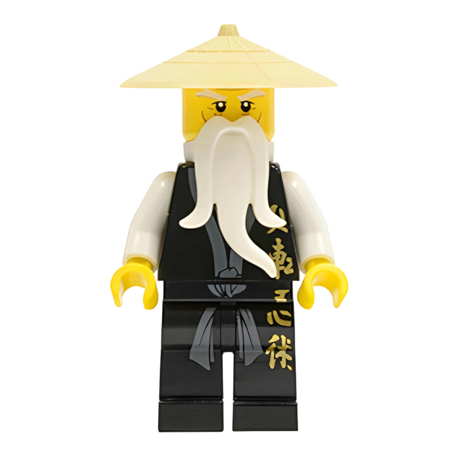 | Englische Bezeichnung | Wu Sensei - Black Kimono with Gold Symbols, Dark Bluish Gray Sash, Tan Asian Hat, White Beard |