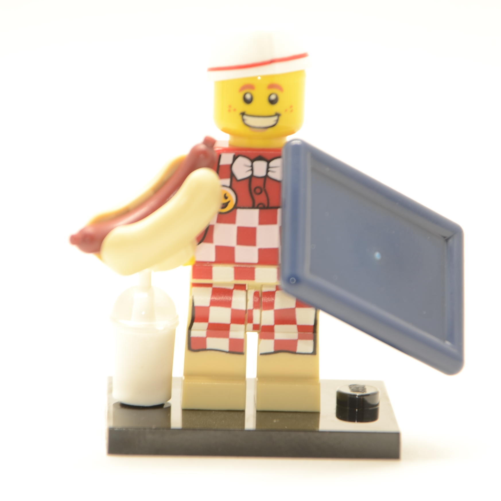 - Jeder Minifigur liegen ein oder mehrere Zubehörteile sowie eine Stellplatte und eine Sammlerbroschüre bei.