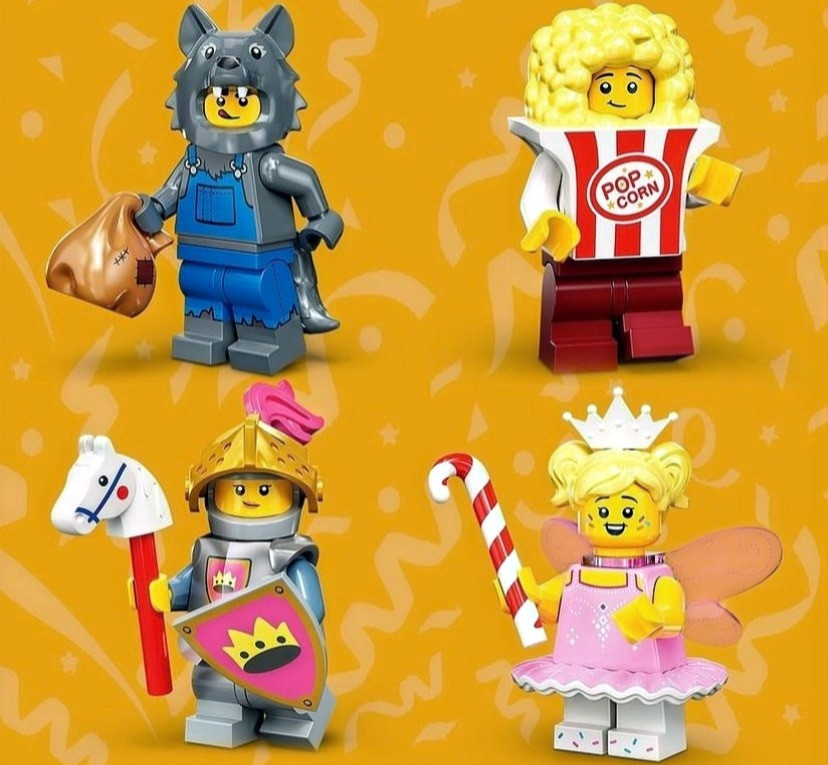 Kinder und erwachsene Fans dürfen sich auf fantasievolle Charaktere in limitierter Auflage freuen: Nussknacker, Zuckerfee, Grüner Drache-Kostüm, Schneemann, Rentierkostüm, Weihnachtselfe, Truthahn-Kostüm, Papproboter, Popcorn-Kostüm, Wolfs-Kostüm, Fährenkapitän und Ritter der gelben Burg.