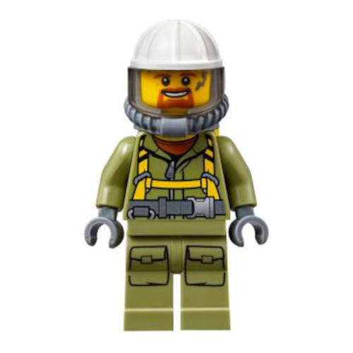 | Englische Bezeichnung | Volcano Explorer - Male Worker, Suit with Harness, Construction Helmet, Breathing Neck Gear with Yellow Air Tanks, Trans-Brown Visor, Goatee |