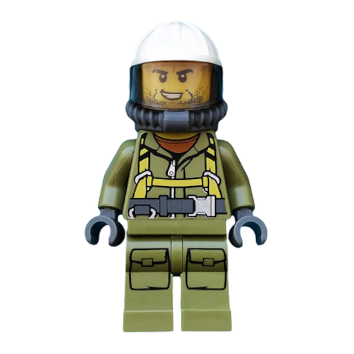 | Englische Bezeichnung | Volcano Explorer - Male Worker, Suit with Harness, Construction Helmet, Breathing Neck Gear with Yellow Air Tanks, Trans-Brown Visor, Goatee |