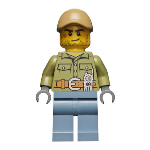 | Englische Bezeichnung | Volcano Explorer - Male, Shirt with Belt and Radio, Dark Tan Cap with Hole, Crooked Smile and Scar |
